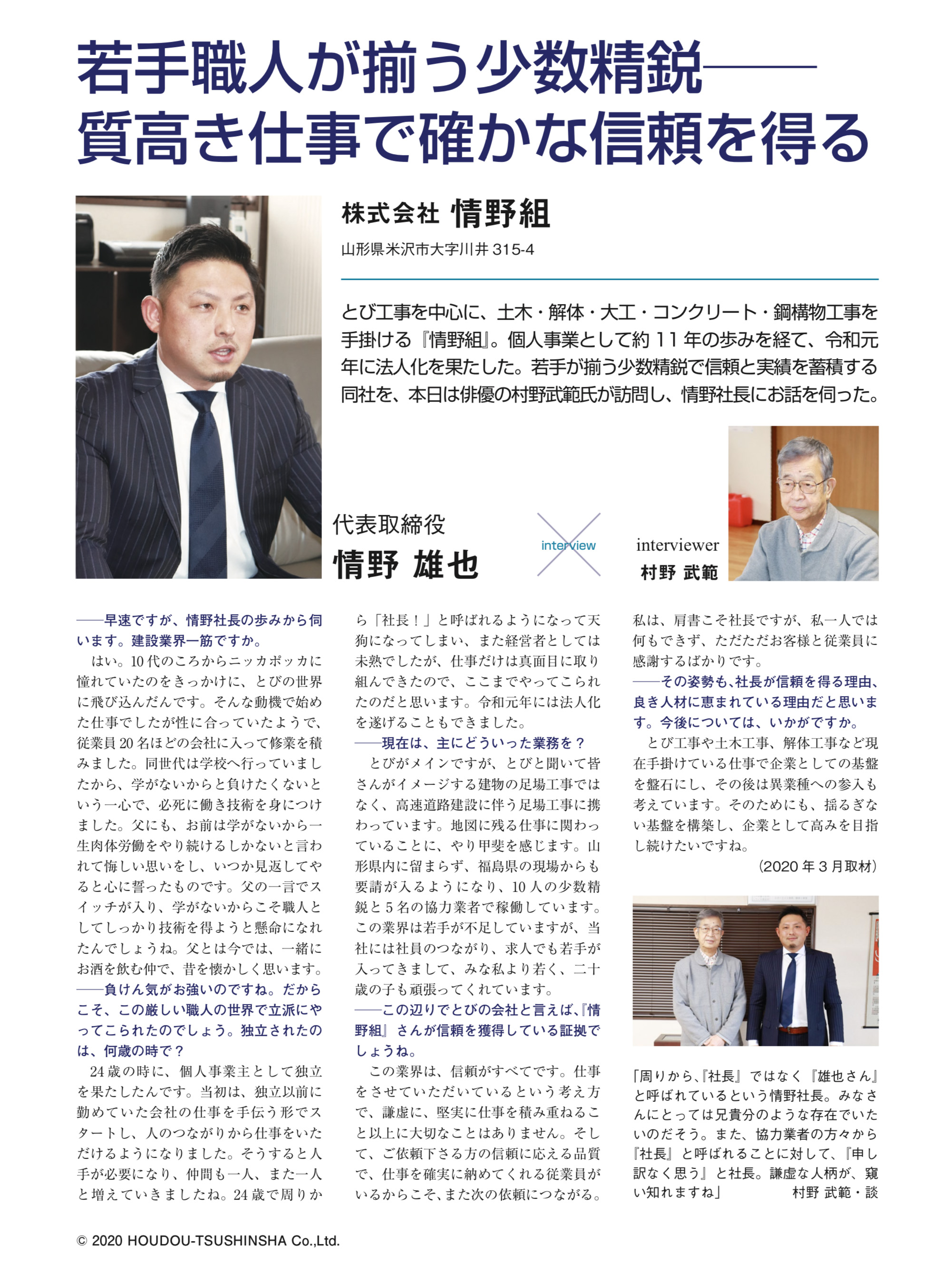 山形県米沢市の株式会社情野組についてのご紹介。